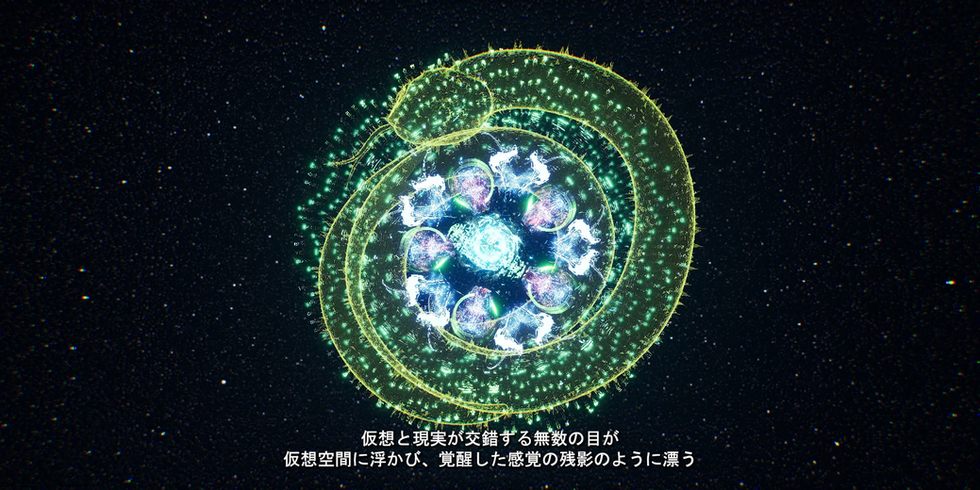 影片里的蛇象征了现代科技企业,这些企业塑造、数字化人类的欲望,并对其进行精细的技术整合与升级,以持续不断地刺激消费。与原始的伊甸园叙事不同,在这个数字化的再诠释中,没有单一的亚当与夏娃;相反,我们每个人都是这些原型角色,不断地被科技所提供的虚假苹果所诱惑。一旦咬下一口,这颗数字苹果便会将人们永久困在由算法驱动的景观之中,不断榨取他们的价值,直至耗尽。 影片最终提出了一个根本性的问题:真正理想的数字乌托邦是否可能实现?抑或每一个数字乌托邦最终都注定沦为另一个被算法和欲望控制的景观?